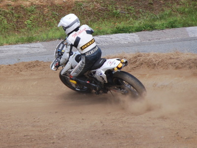とりあえず、ダート付きのモタードコースは当分修行が必要っぽいので、暫く諦める事にして(笑)、今度、ターマックコースのみのレースに出場してみようかな・・。