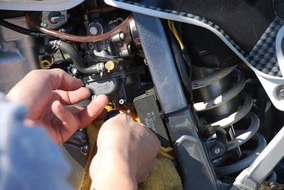 昼休み。 ニードルのクリップ位置を変えてみる・・っつー事で、タンクを外してセッティング。