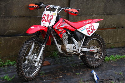 爺ヶ岳にて、泥まみれになったCRF100F(ソリ号)。 早く洗ってあげなくちゃ・・と思いつつも洗車している時間がなくて、木曜日、ようやくその泥を落としてあげる事が出来ました。