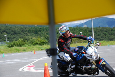 ホームコースじゃない事で、どうもリズムを掴めないのか、はたまたタイヤが減ってる事でスリッピーになってたからか・・、午前中は、何度かバイクの引き起こし練習をしておりました。
