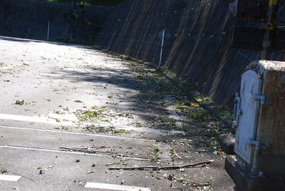 隣の運動公園の木の枝が折れて散乱していたり・・