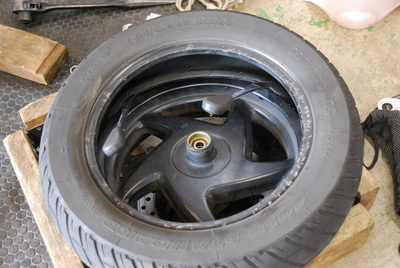 ちっちゃいタイヤって、意外と大変なのよねぇ。 特に、このテのビックスクーターのタイヤは。
