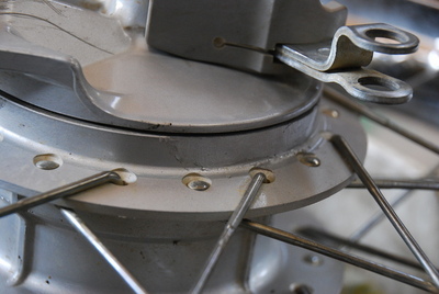 不運な事にフロントホイールのセンター部分が、リヤホイールのハブの内側に重なる形になっていて、置いた瞬間に径の小さいリヤタイヤの方が下に落ちる形になって、内側からハブを叩いてしまったんです。