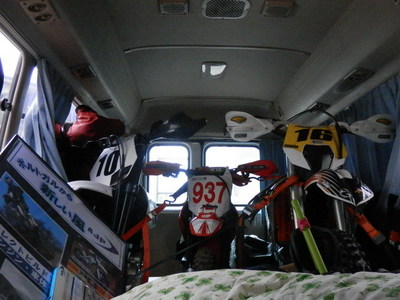 今回は、AJPのコースターに一緒に乗せて頂いての新潟入り。 バイク3台積み込んで、川西へと向かったのでありました。