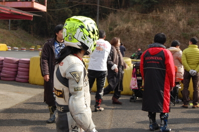何か、ちょっと気になって、少しコースを見ていたら、目の前で、今コースインして行ったばかりの「CLUB愛」の女の子が転倒した~! 1コーナーに向かう途中の直線で、何が原因なのかは分からないけど、転倒した。
